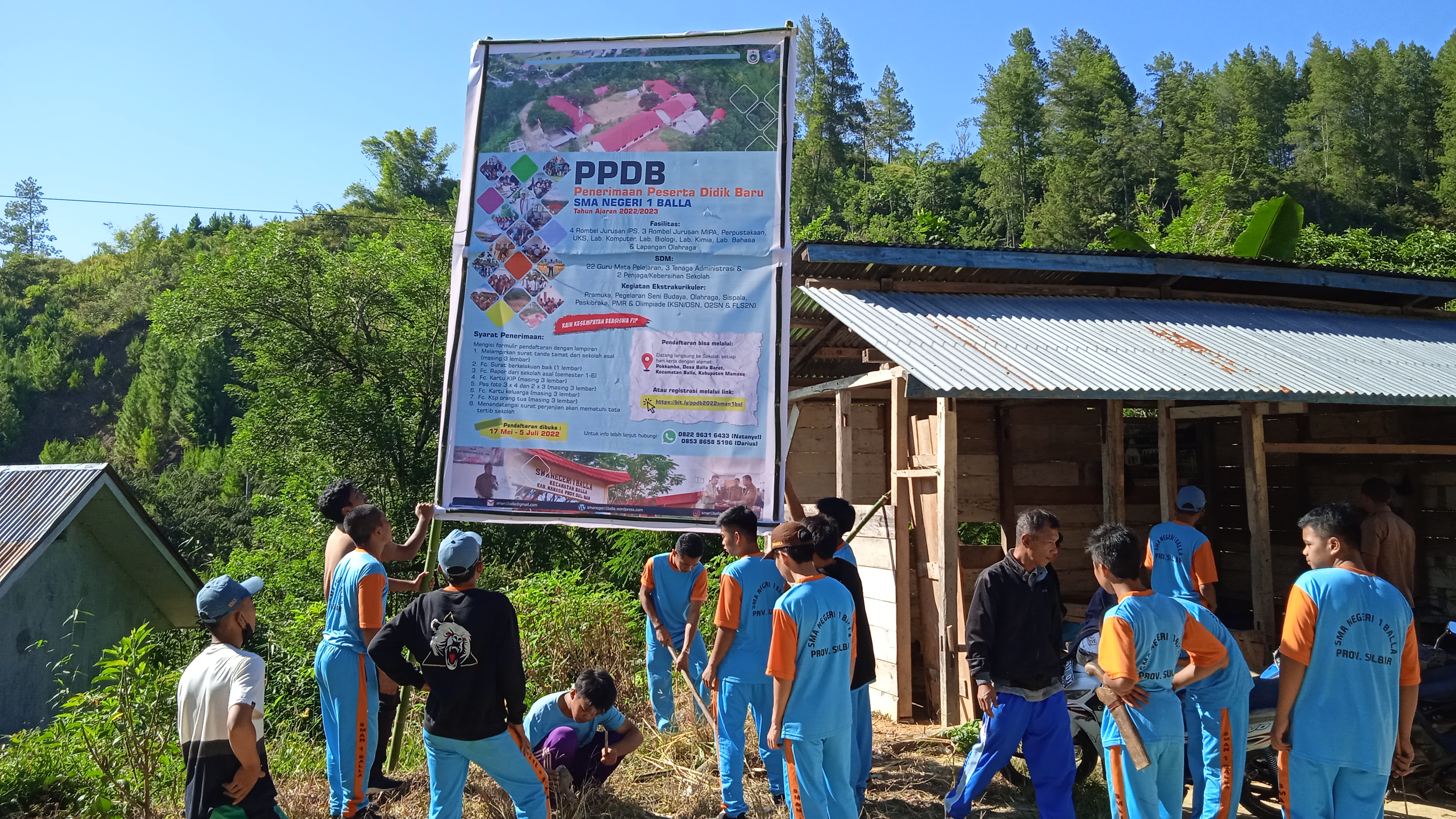 Pemasangan Baliho PPDB 2022 oleh oleh para siswa yang dikoordinator oleh Panitia PPDB dengan OSIS SMA Negeri 1Balla.